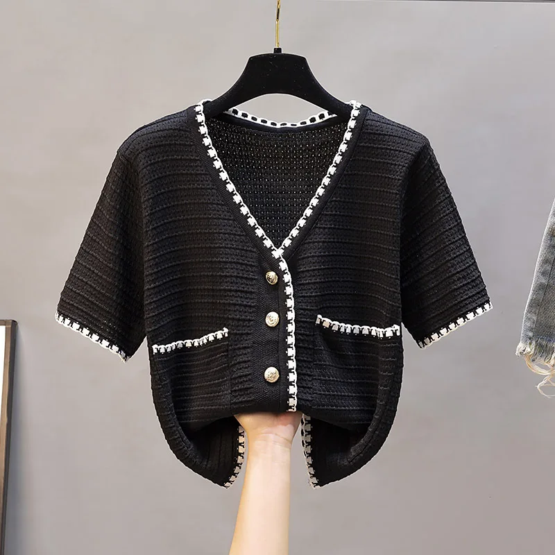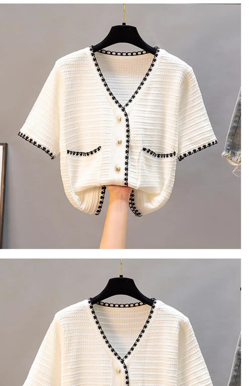 Ice Silk Graphic Tee V - neck Tops for Women Trendy Knitted Cardigan - Zeprah