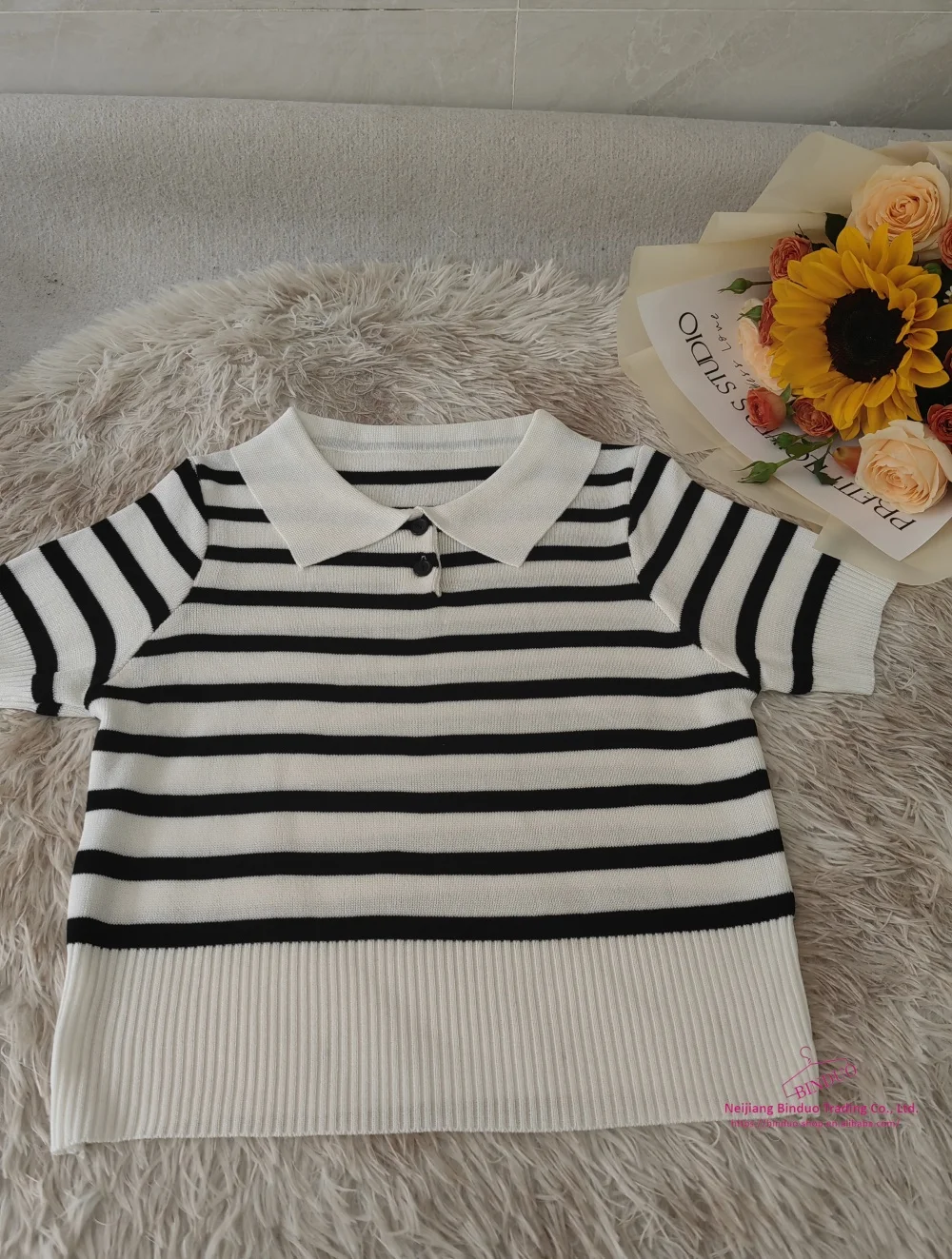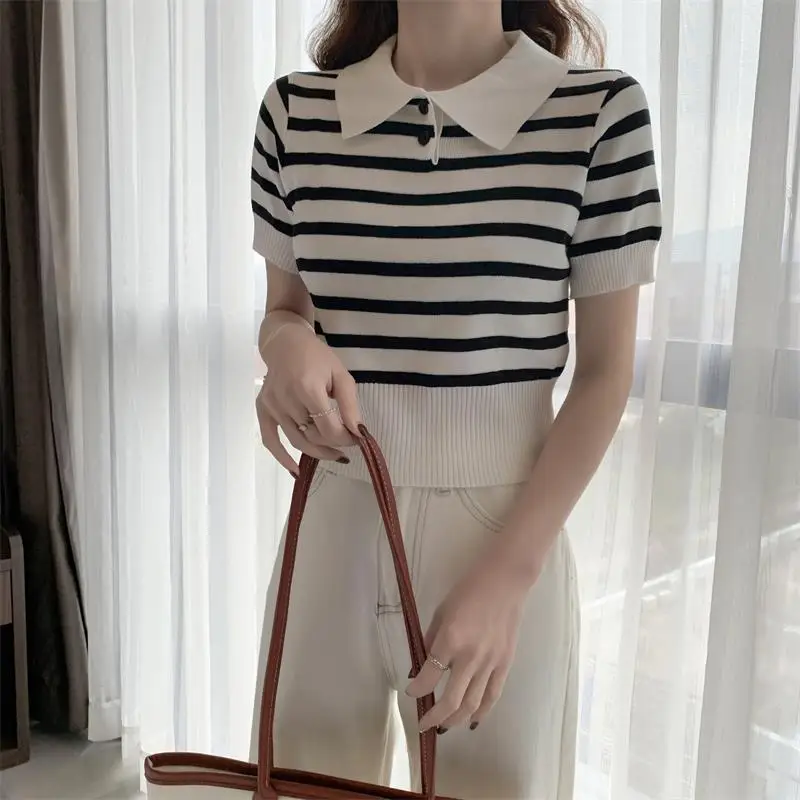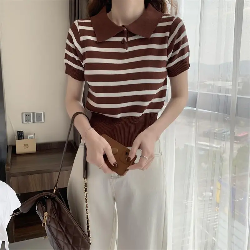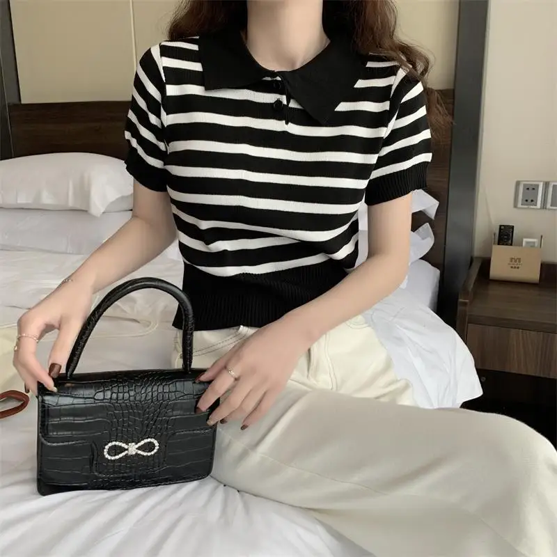 Knitted Short Sleeve T-shirt Simple T-shirt Versatile Graphic Tee