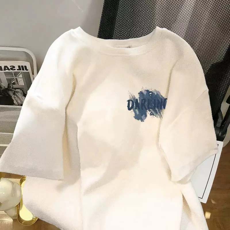 Printed round neck slim short T-shirt casual all-match ins cute age-reducing top pure American hot girls letter print