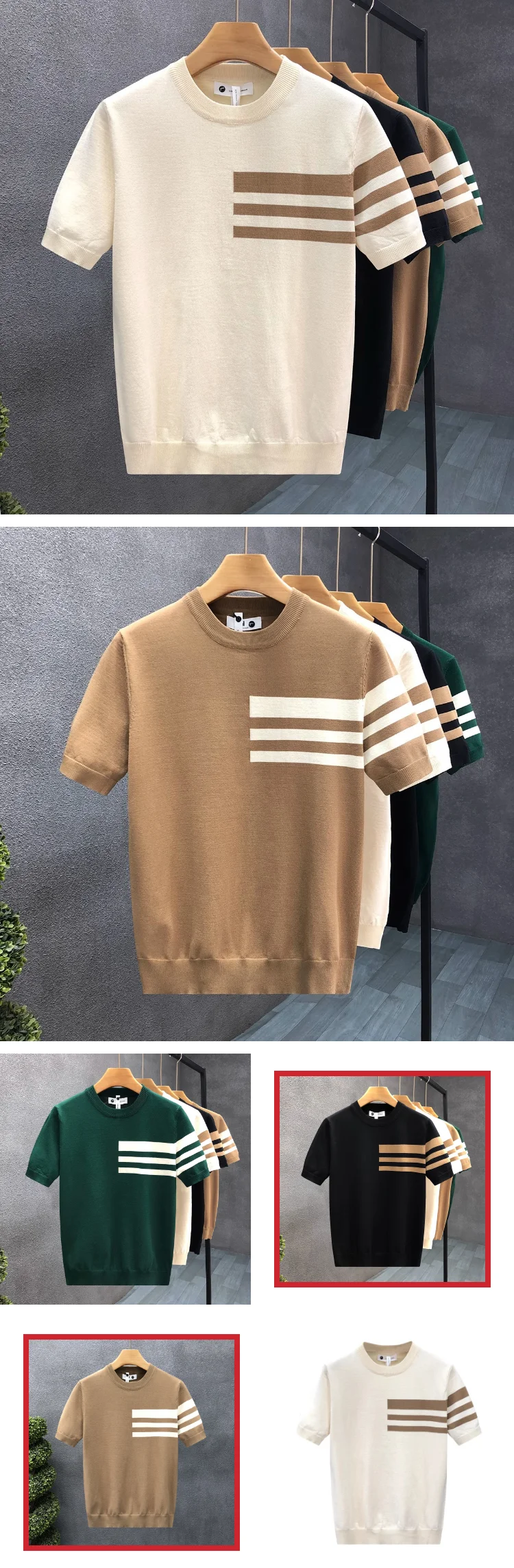 Men's New Summer Short-Sleeve Striped Minimalist Business Smart-Casual Slim-Fit Ice Silk T-Shirt