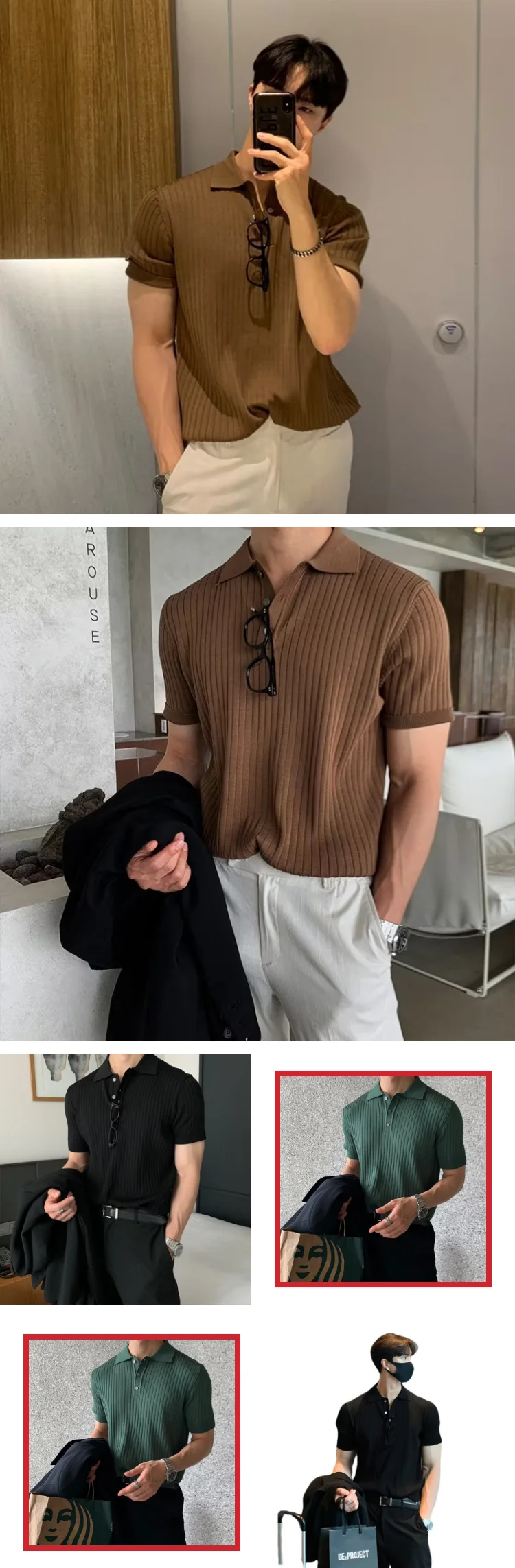 Men's New Trendy Korean-Style Knitted Short-Sleeve T-Shirt - Collared Polo Shirt with Textured Details Casual Summer T-Shirt