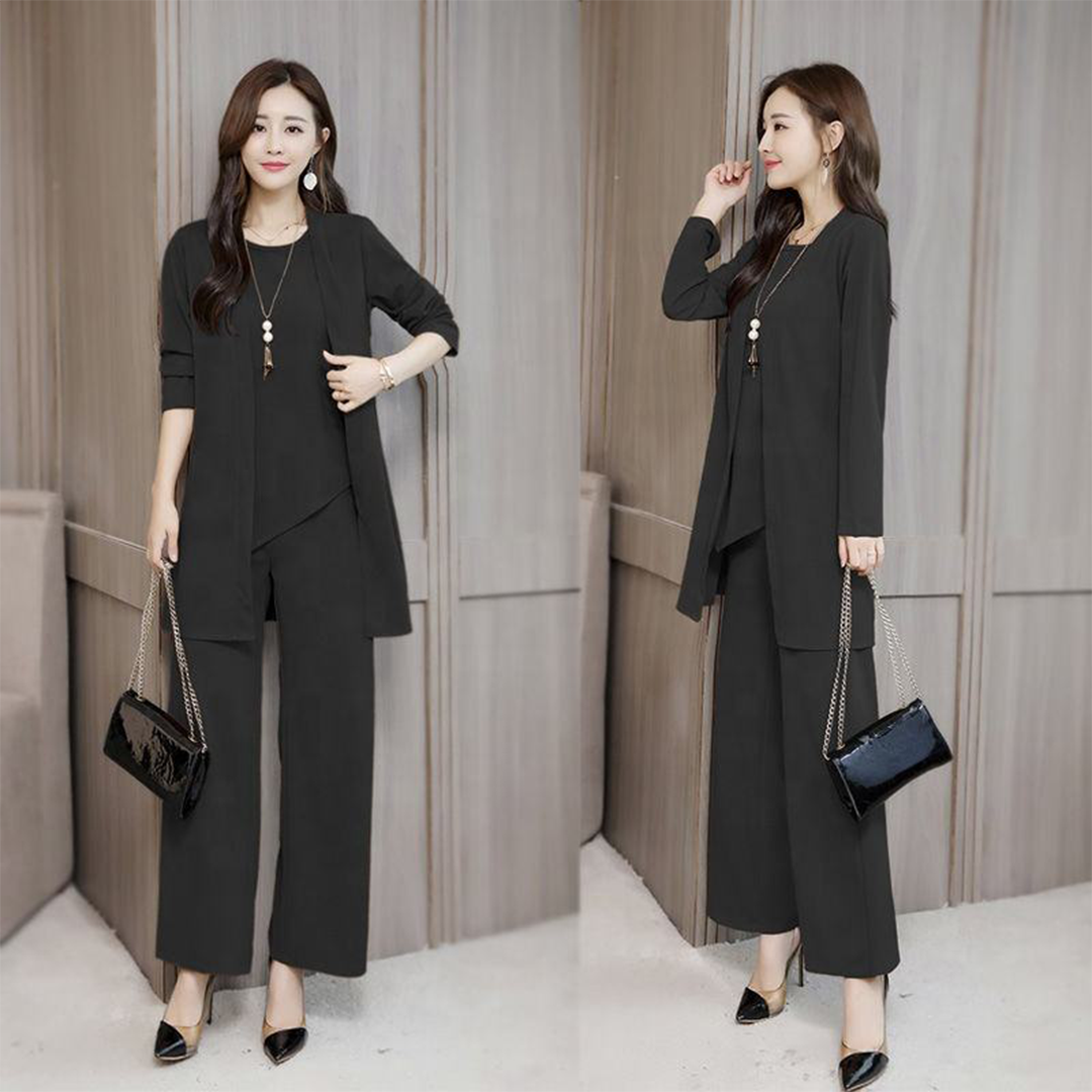 Discover effortless sophistication with this New Design 3-piece Women's Casual Set. This bestselling ensemble features a versatile sleeveless/long-sleeve top (depending on the image), layered under a coordinating long cardigan/duster jacket, and finished with elegant high-waisted wide-leg palazzo pants. Available in Caramel, Wine Red, and Classic Black, this premium quality set offers a flattering, flowy look for all sizes and occasions.