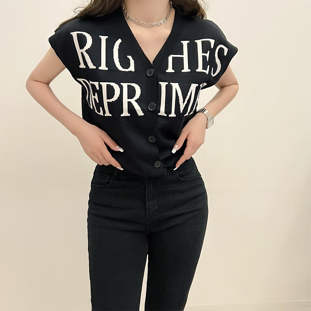 New Fashion Knitting Sweater - Printed Sleeveless Knit Top