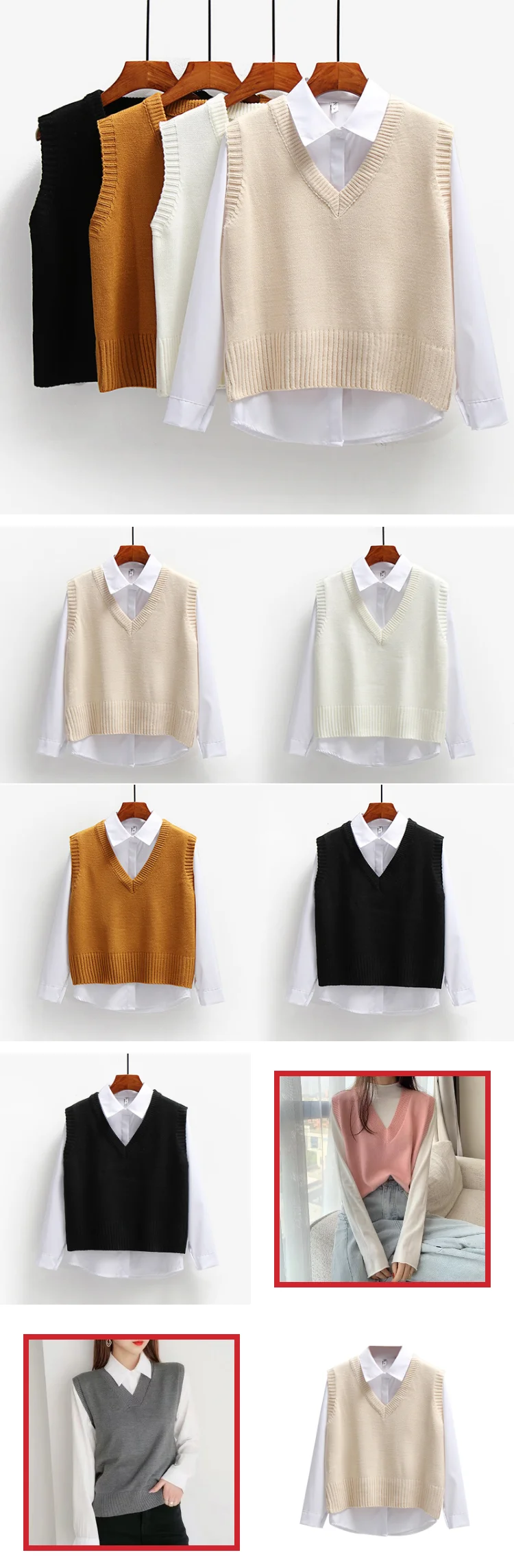 New V-neck Sweater Vest Spring and Autumn College Style Ladies Waistcoat Literary Short Loose Vest Women's Knitted Tops