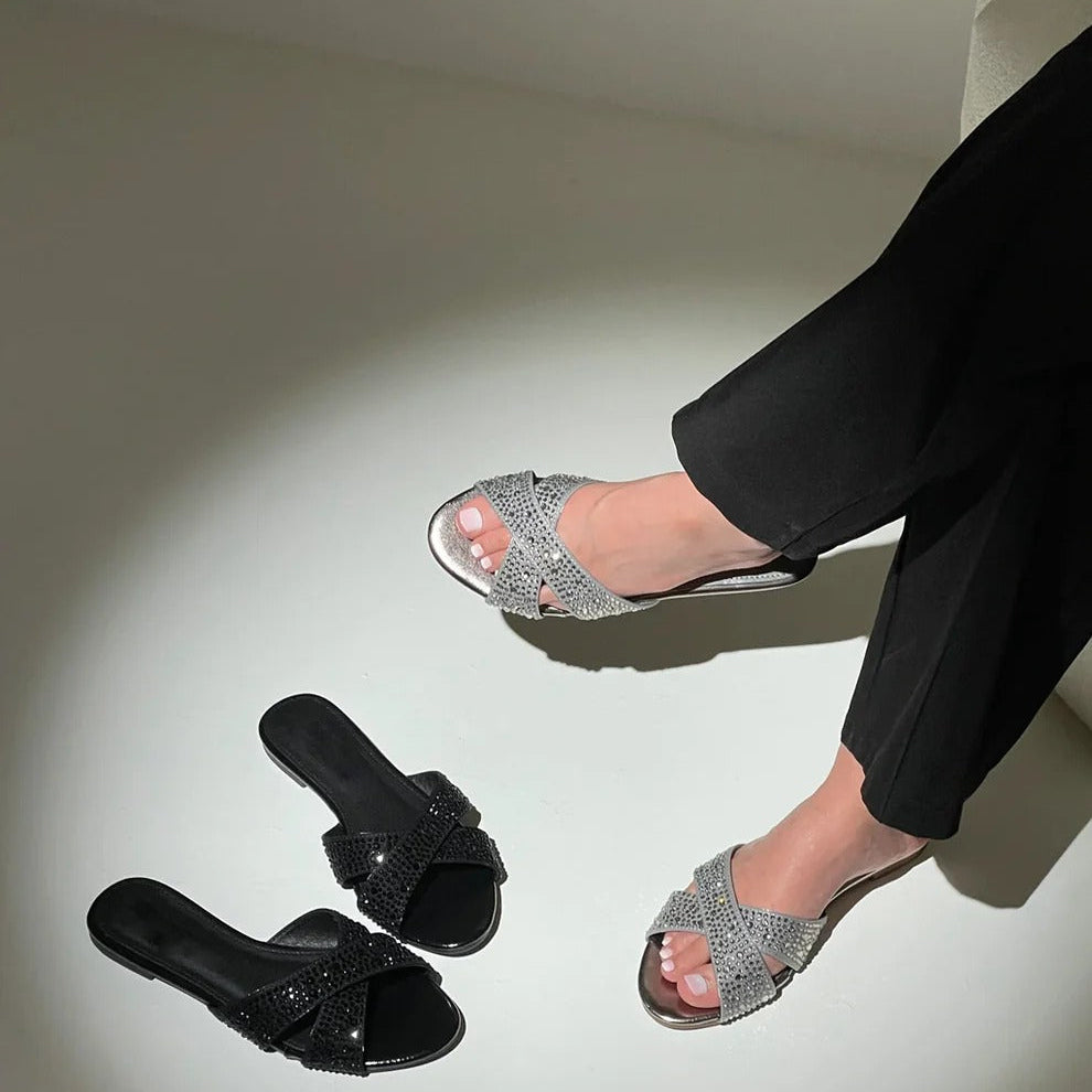 Step out in style with the Nina Cross flats, featuring elegant cross-embellished stones that add a touch of sparkle to your look. These flats combine comfort and chic design, making them perfect for both casual outings and special occasions. Enjoy a supportive fit that keeps you comfortable all day while elevating your outfit with subtle glamour.