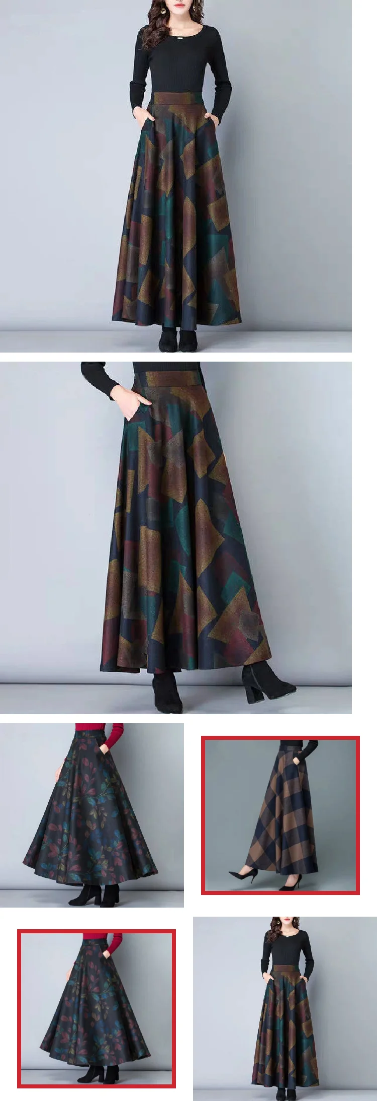 Plaid Skirt A- Line Skirt Large Swing Long Skirt Mid-length Skirt Women's Autumn and Winter New Large Size Women's Skirt
