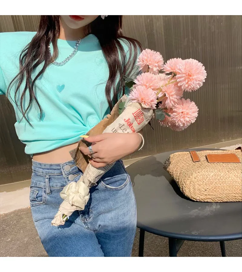 Printed round neck slim short T-shirt casual all-match ins cute age-reducing top pure American hot girls letter print