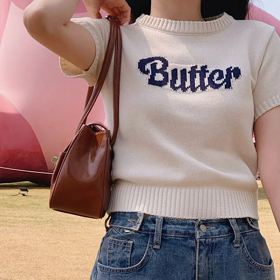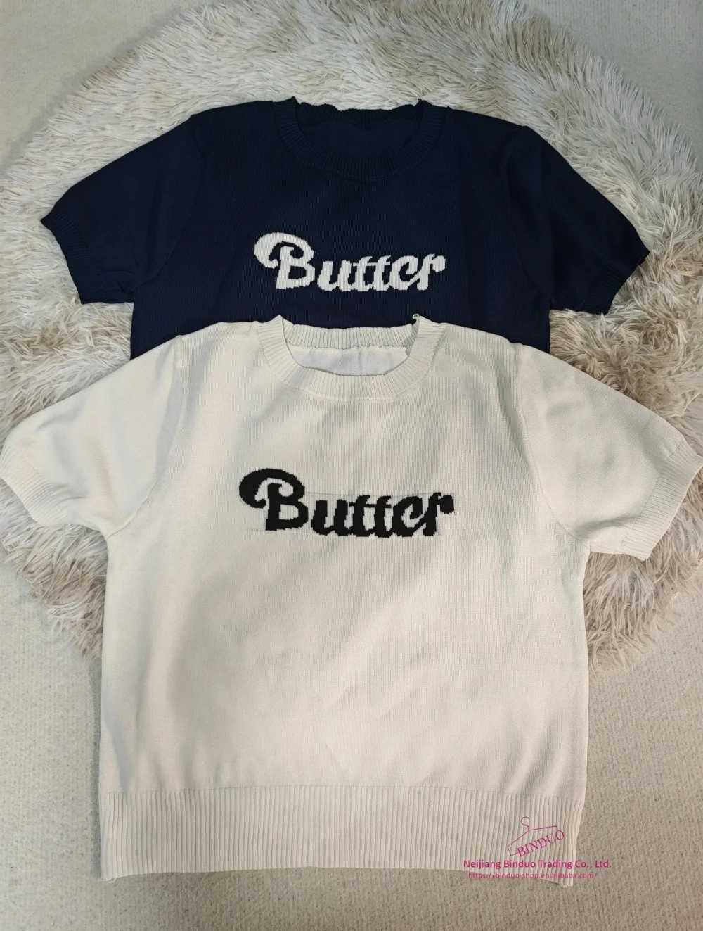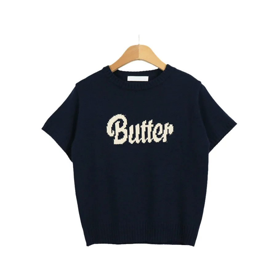 Printed round neck slim short T-shirt casual all-match ins cute age-reducing top pure American hot girls letter print