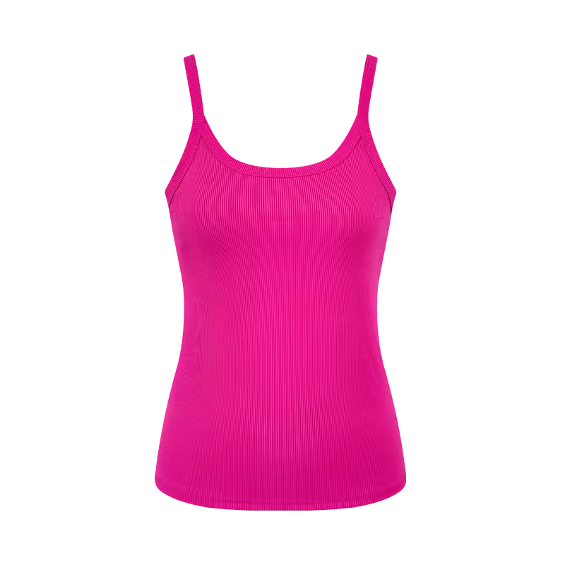 a vibrant, hot camisole or tank top on a simple background. The top is made from a soft, breathable ribbed cotton or knit blend fabric, offering a comfortable, form-fitting silhouette.