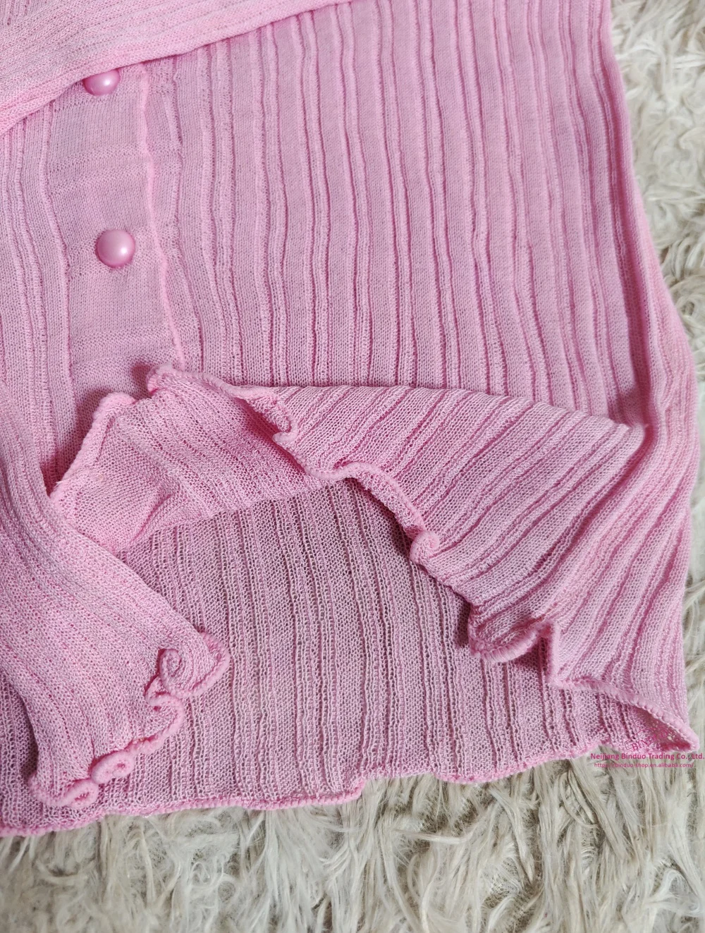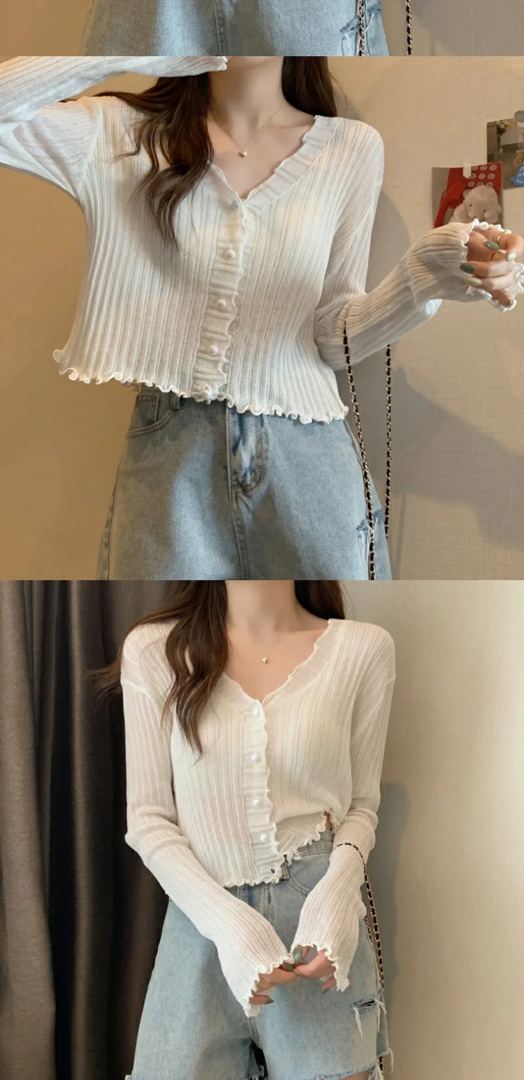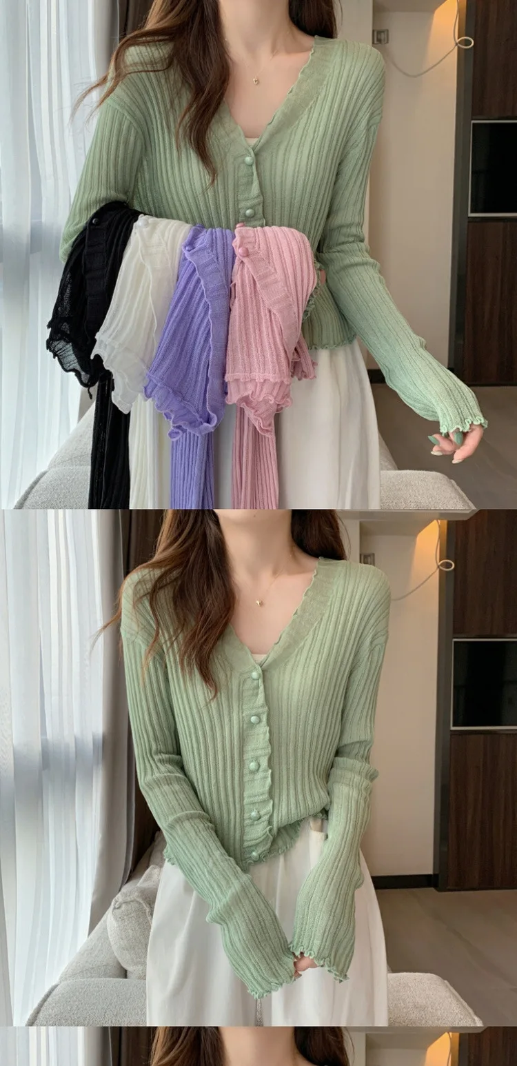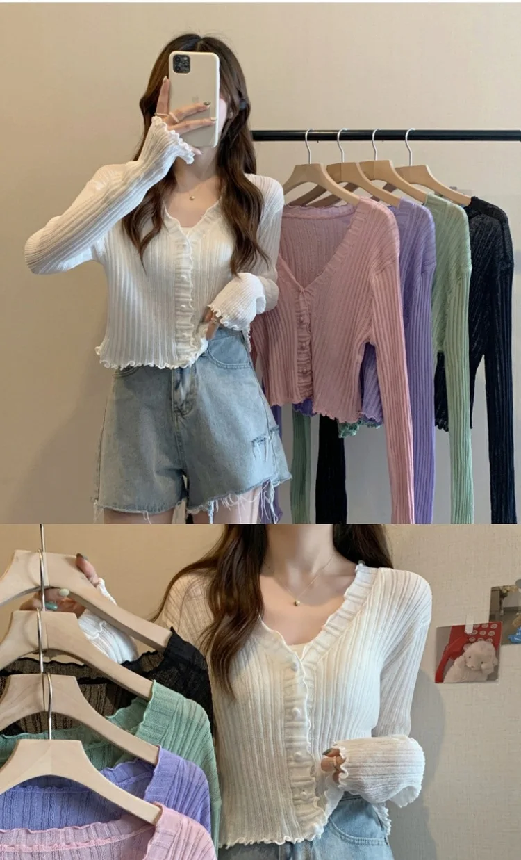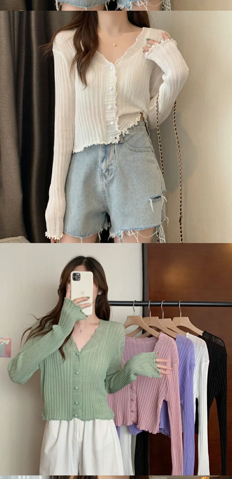 Selvedge Knit Cardigan Top Solid Crop Top Ice Silk Sun protection Smock Top