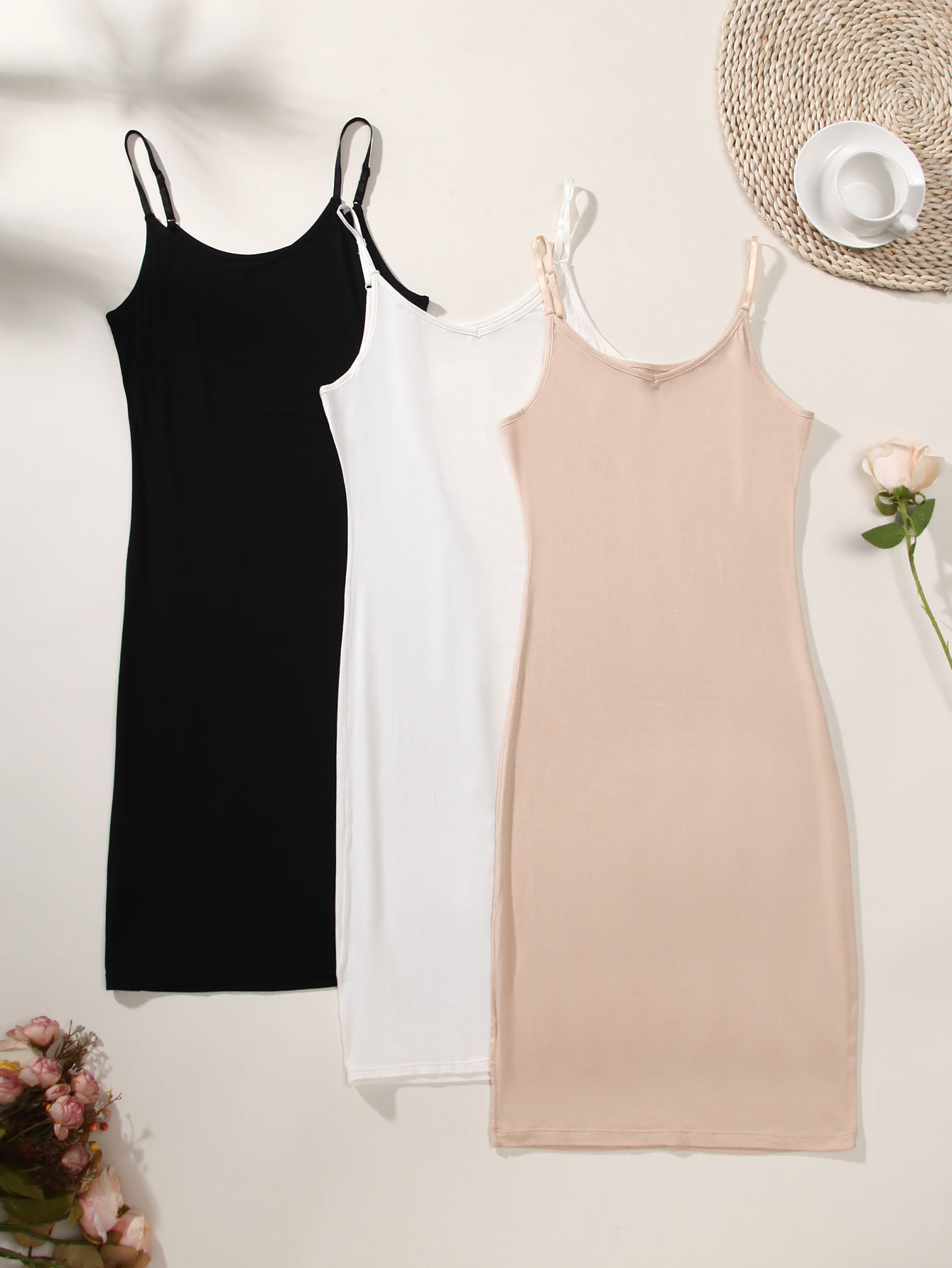 Showcase your figure in this sleek, modern midi dress. The construction uses a comfortable, stretchy fabric (possibly a fine ribbed knit) designed to hug the body for a flawless fit. It features a simple scoop neck and delicate adjustable camisole straps. The neutral nude/tan hue is versatile and flattering for various skin tones. This dress is a perfect blank canvas for creating countless stylish outfits, easily transitioning from day to evening wear.