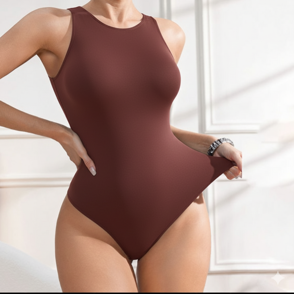 Women’s Sleeveless Bodycon Bodysuit – High Crew Neck, Sleek & Smooth Finish