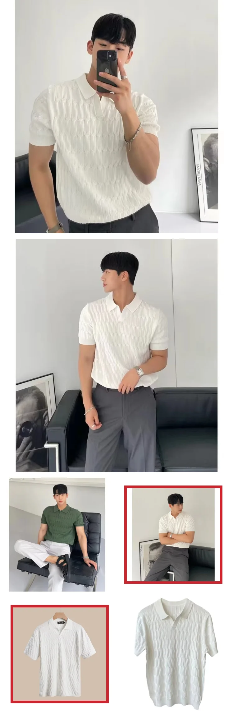 Summer Men's Knitted Short-sleeved Polo Shirt Korean Style Slim-fit Solid Color Ice Silk Casual Lasel Half-sleeved T-shirt