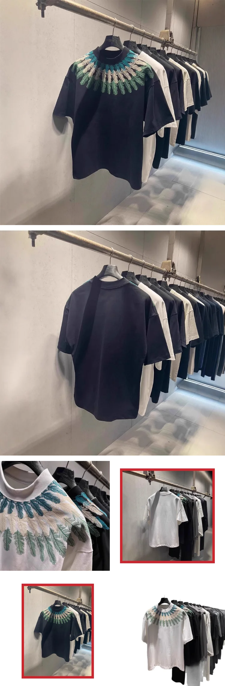 Summer Men's Retro Embroidered T-Shirt Short Sleeved Loose Casual Heavyweight High Street Style American T-shirt