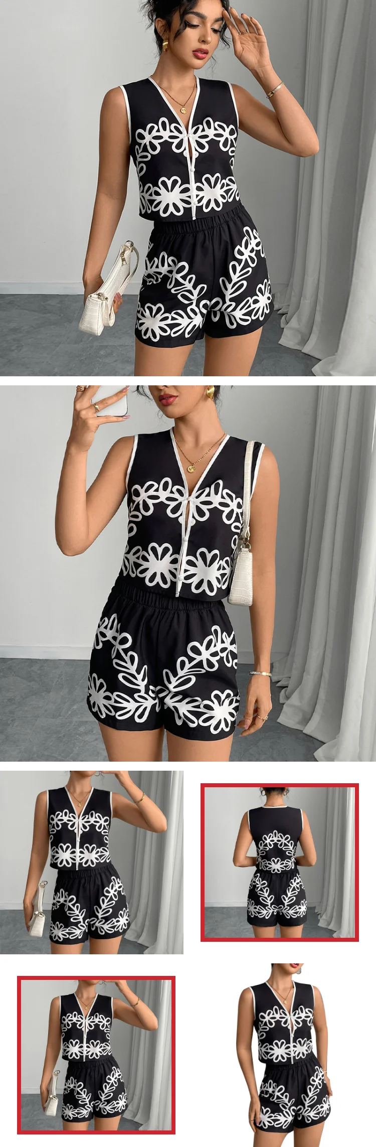 Summer Vacation Women's Cross - Border European American Temperament Above Knee Vest and Shorts Two - Piece Suit - Zeprah