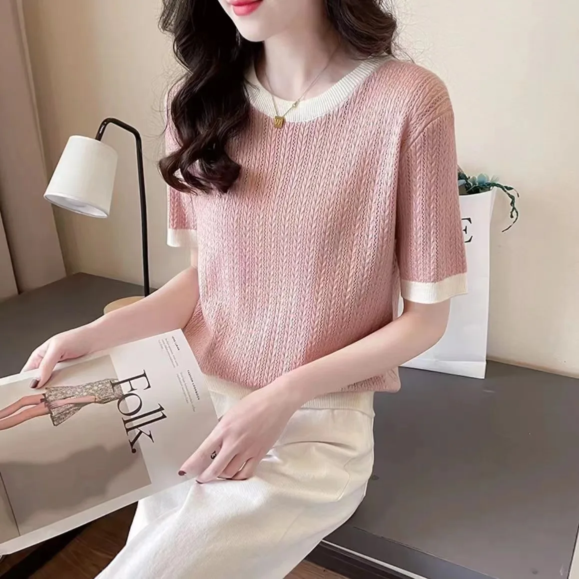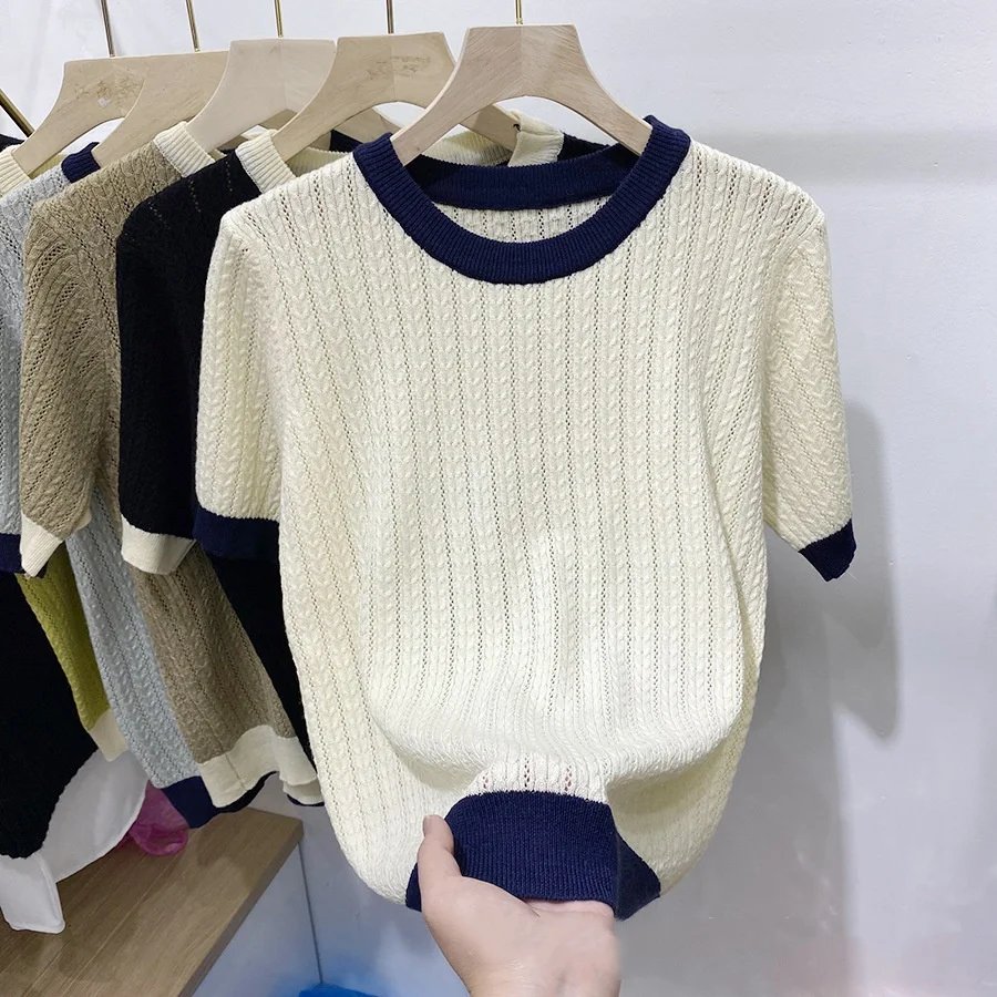 Trendy Tops for Women Comfortable Contrasting Colors Women's T-shirts Simple Short-sleeved T-shirt