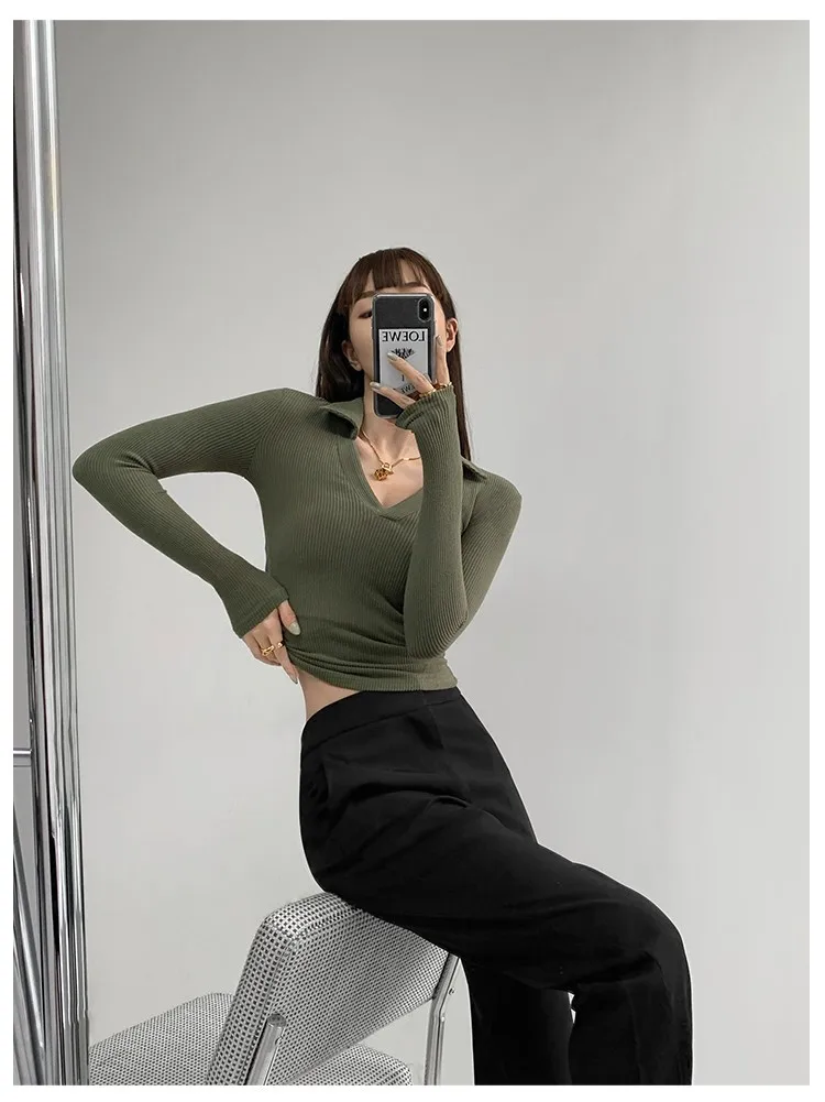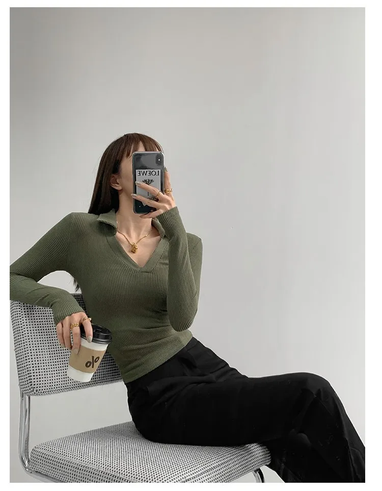 V - neck Long - sleeved Top Classic Long Sleeve Base Shirt Slim - fit Long - sleeved T-shirts - Zeprah