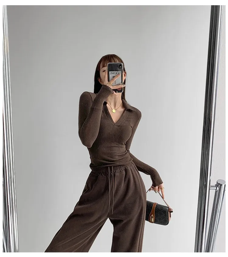 V-neck Long-sleeved Top Classic Long Sleeve Base Shirt Slim-fit Long-sleeved T-shirts