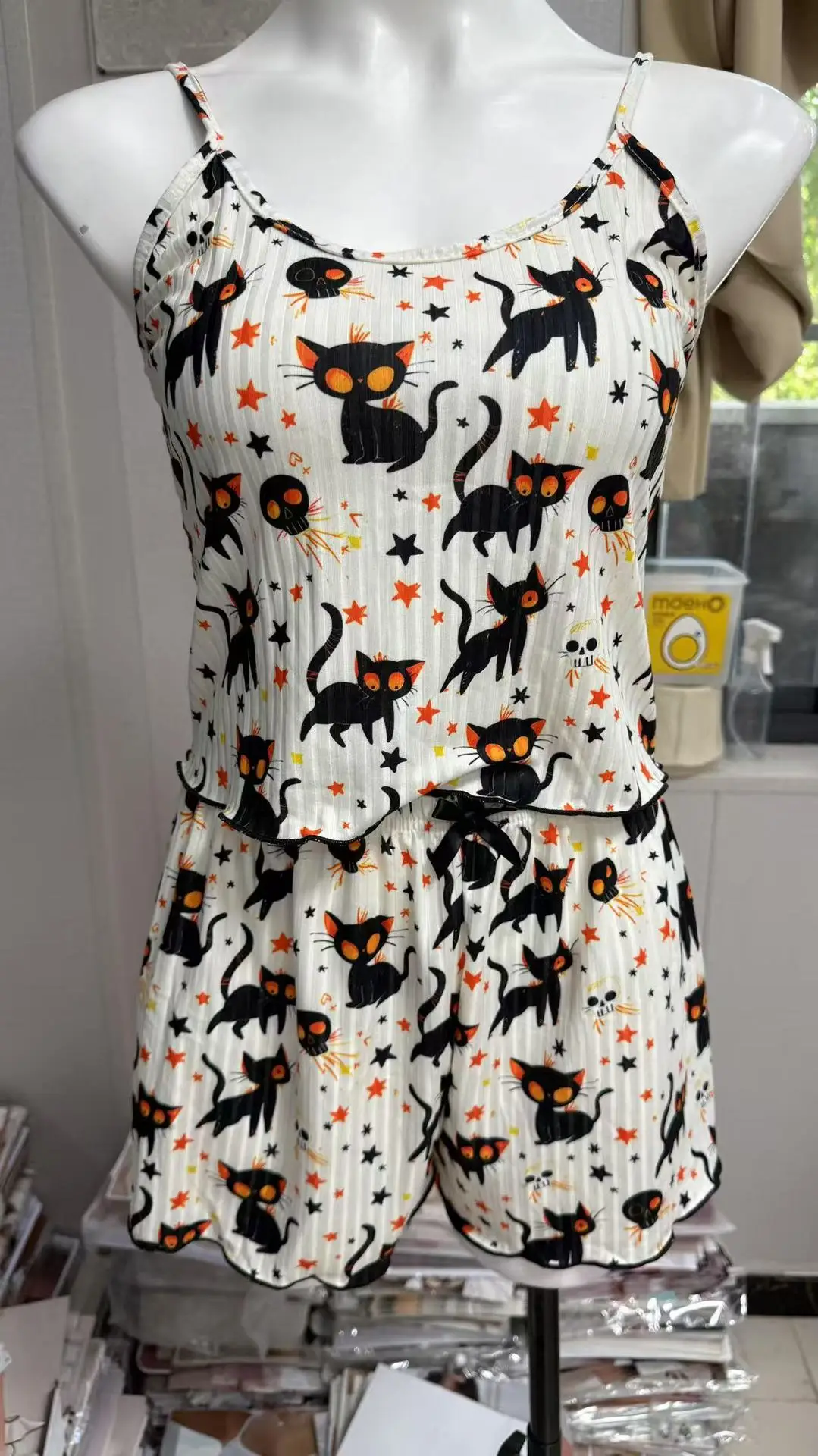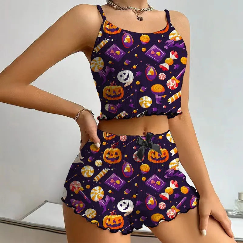 Women's Halloween Printed Sleeveless Camisole Top Set Sexy Short Camisole Shorts Breathable Elastic Waist Autumn Women's Pajamas